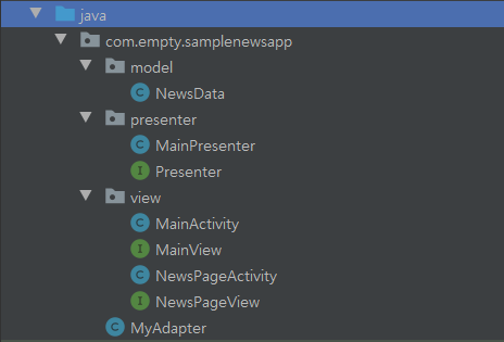 구분하기 편하도록 model, view, presenter로 패키지를 나누었다.