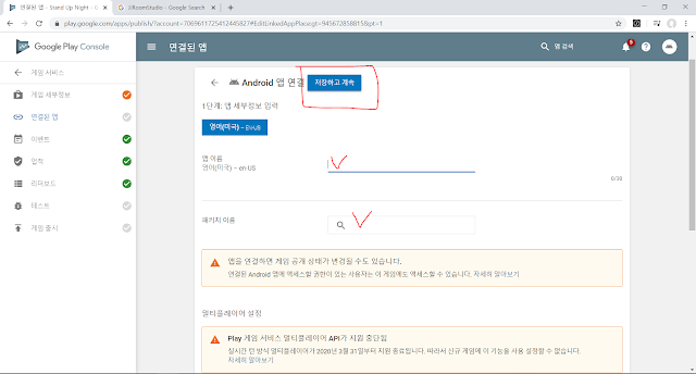 앱이름 채우거 패키지이름 유니티 프로젝트와 동일하게 입력 -> 저장하고 계속 -> 지금앱승인 -> 확인