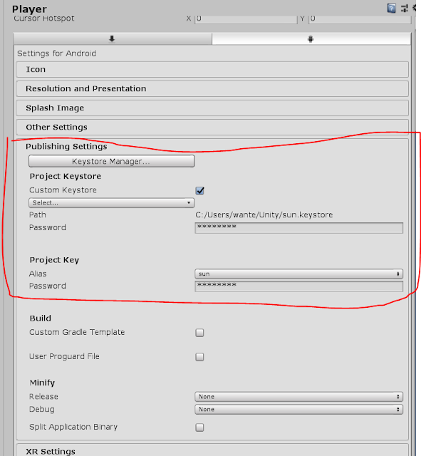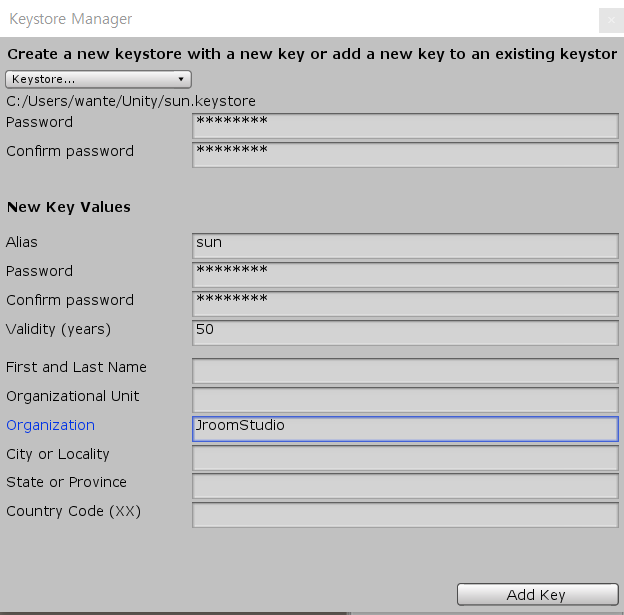 publishing setting -> keystore manager -> create new -> anywhere -> 저장