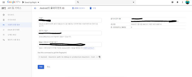 구글플레이 콘솔 -> 모든 애플리케이션 -> 생성한 프로젝트 -> 앱서명 -> 업로드 인증서 -> SHA-1 인증서 지문 복사 -> 이미지 16의 SHA-1 에 붙여넣기
