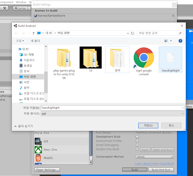유니티 에디터 -> File -> Build Settings -> Build
