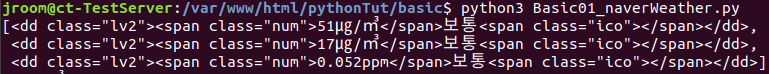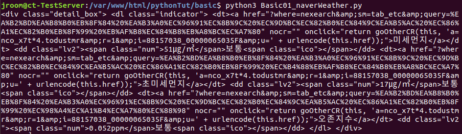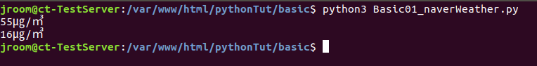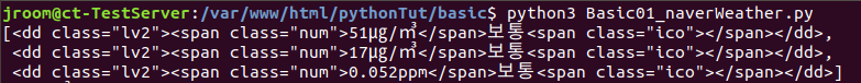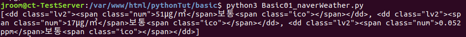 -> 반환된 text를 fine-dust 변수에 담아 print() 메소드로 출력한다.