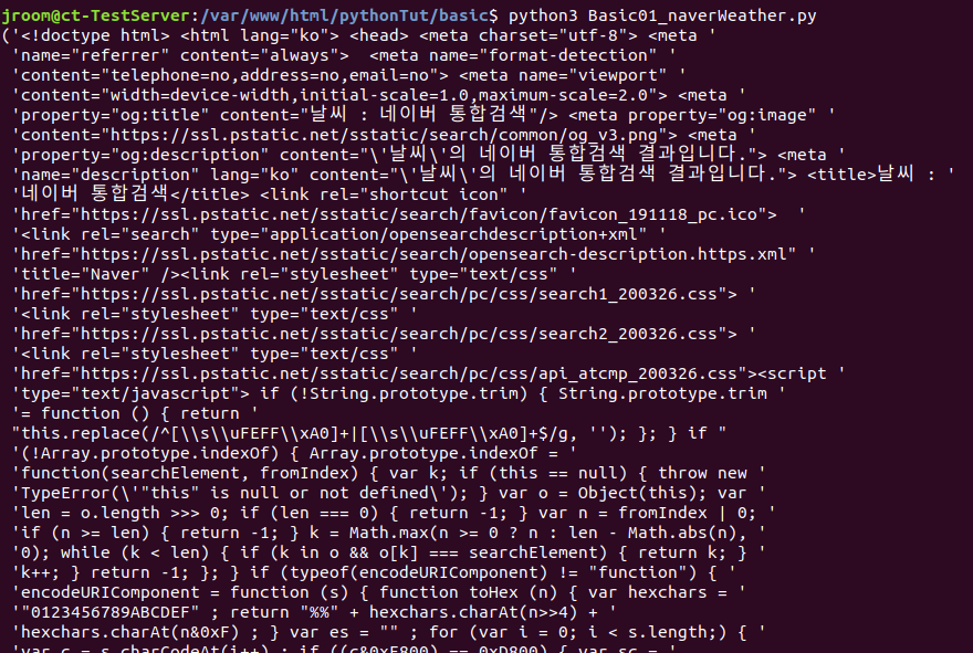 -> requests모듈의 get 메소드에 url 을 입력하면 해당 url의 페이지의 html 소스를 전부 가져온다.