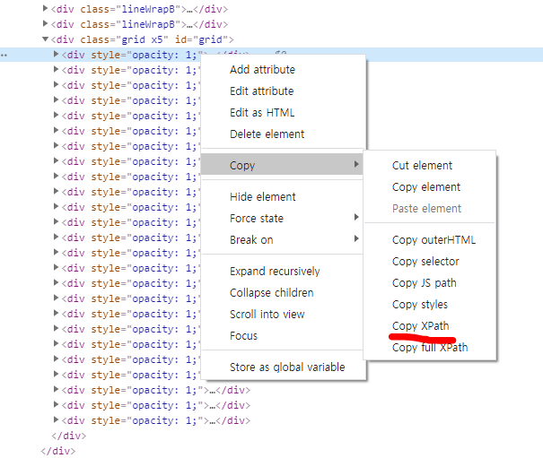 -> div 태그 내부에 style 이라는 정보밖에 없어서 구분할 수가없다. 이럴 땐 xpath를 사용한다.