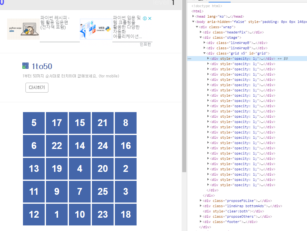 [Python] 웹 크롤링 6 - 1 to 50 봇 본문