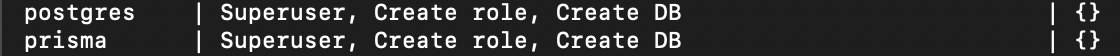 $ pgcli postgresql://prisma:prisma@localhost:5432/grading-app