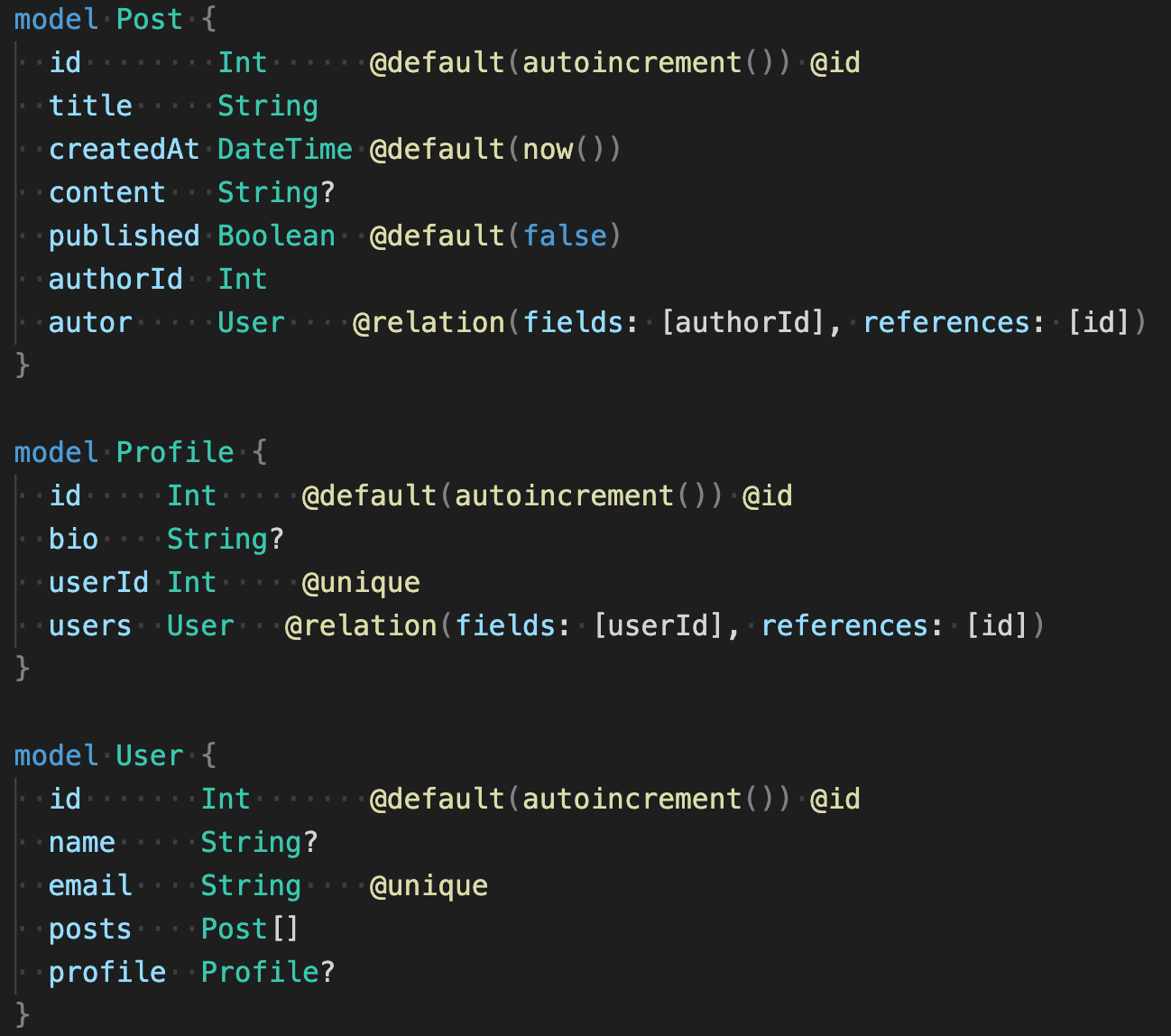 prisma에서 제공하는 introspect 명령어를 사용하면 아래와 같이 스키마를 자동으로 작성하게 됩니다. (해당 기능은 2.6.0 이전에도 제공되었습니다.)