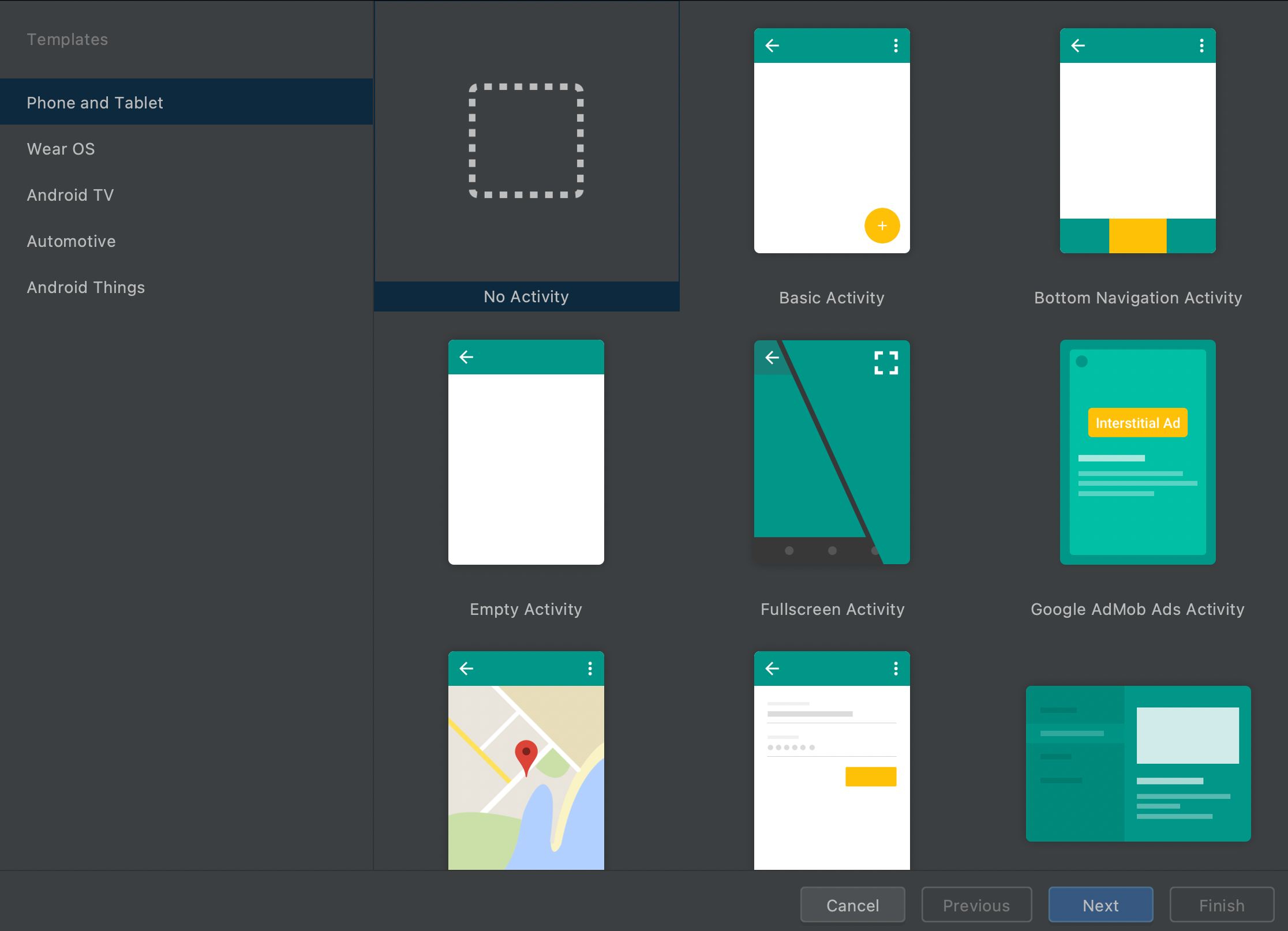 - New project -> No Activity 프로젝트 생성(empty activity도 상관없음)